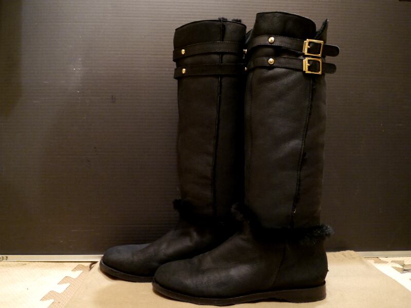 美品18万★JIMMY CHOO ジミーチュウ レディース ムートン レザー ロング ブーツ 黒 37.5★