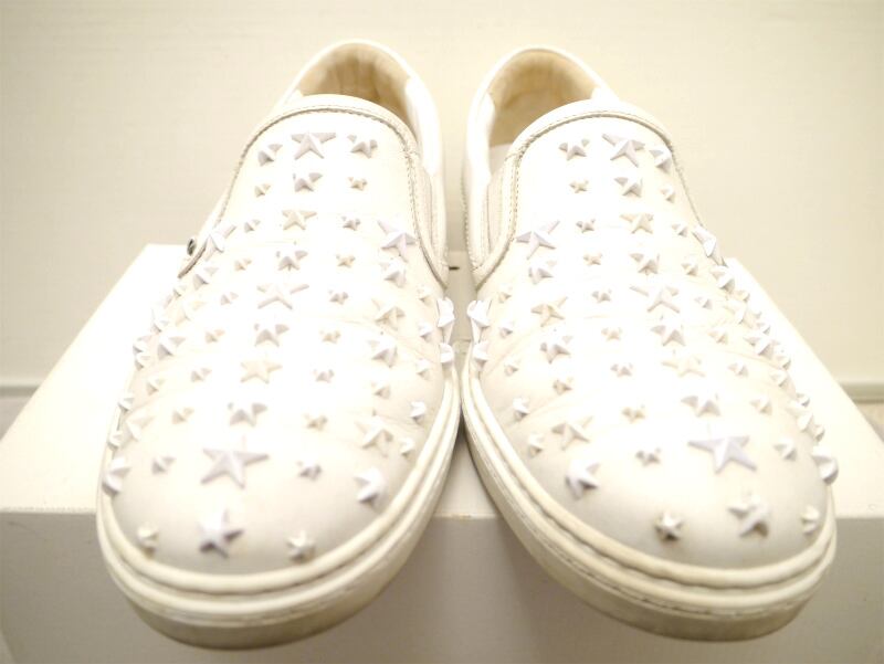 11万◆JIMMY CHOO ジミーチュウ GROVE マルチスタッズ スポーツカーフレザー スリッポン スニーカー 白 41◆ 使い回しにも便利なホワイト♪