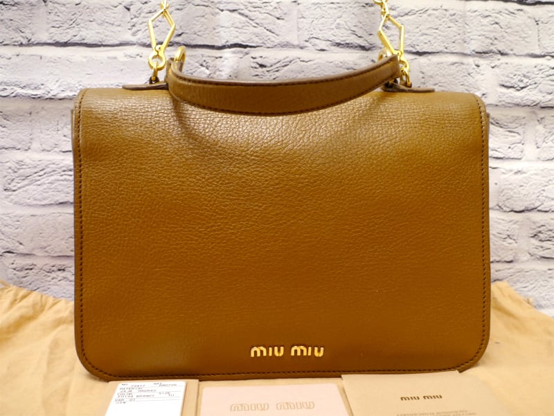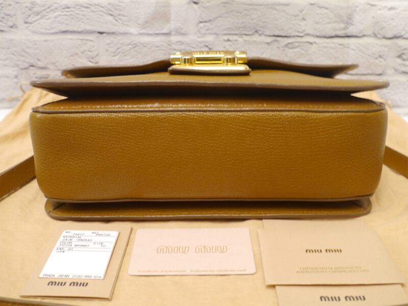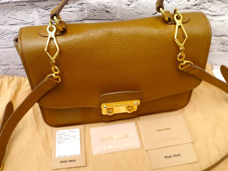 美品★miumiu ミュウミュウ MADRAS マドラス ハンド・ショルダー2way レザー バッグ 茶★ レトロクラシックな雰囲気が可愛らしい人気モデル