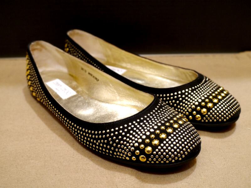 レアモデル7万★JIMMY CHOO ジミーチュウ 総スタッズデザイン フラット パンプス バレエシューズ 黒x金★