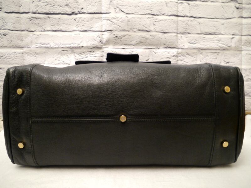 レア美品◆BVLGARIブルガリ ラウンドスタッズ ミニボストン型 レザー トートハンド バッグ 黒◆ タブレット端末も収まる希少なレザーモデル