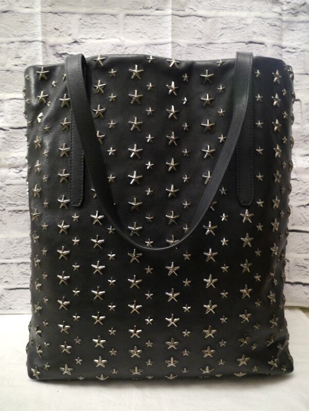 美品★JIMMY CHOO ジミーチュウ PIMLICO ピムリコ M 男女可 大容量 マルチ☆スタッズ レザー トート バッグ 黒★ メンズ定番の大容量モデル