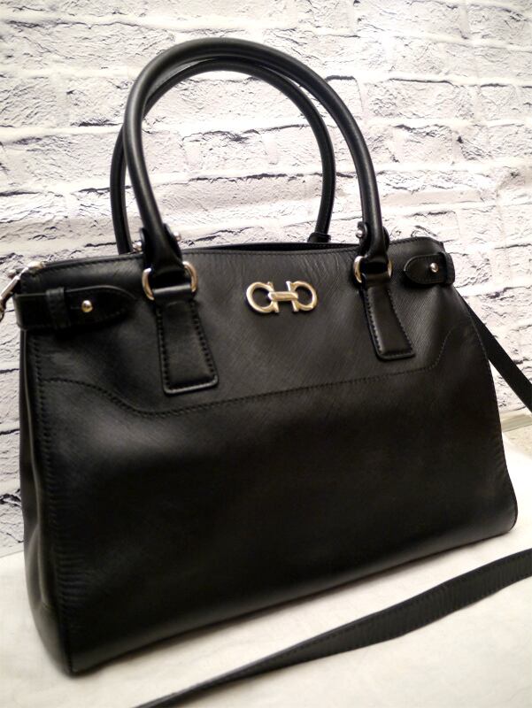 美品◆Salvatore Ferragamo フェラガモ ガンチーニ ビジネス可 2way サフィアーノ レザー トート バッグ 黒◆ 使い勝手の良い2wayモデル♪