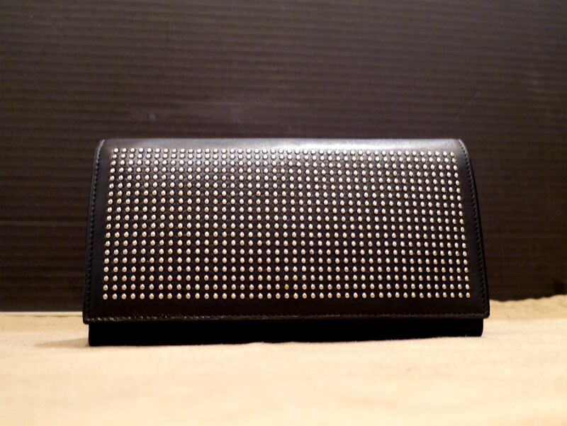 様々なモデルがリリースされてきたエディによるSAINT LAURENTのスタッズ財布ですが、こちらは小ぶりなミクロスタッズが一面に散りばめられたデザインで、決してやり過ぎ感がないので幅広い年代の方にご愛用頂けるモデルです。