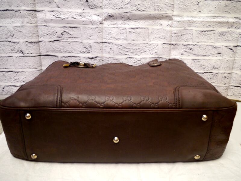 ◆GUCCI グッチ プリンシー シマライン B4対応 ビジネス可 GGエンボスレザー トート ハンド バッグ 茶◆ プリンシーの希少な大容量モデル♪