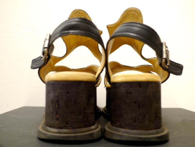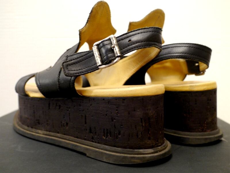 ◆MM6 エムエムシックス メゾンマルジェラ コルクウェッジソール プラットフォーム レザー サンダル 黒 37.5◆ 春夏にピッタリの希少モデル