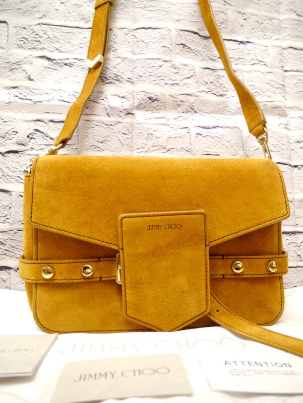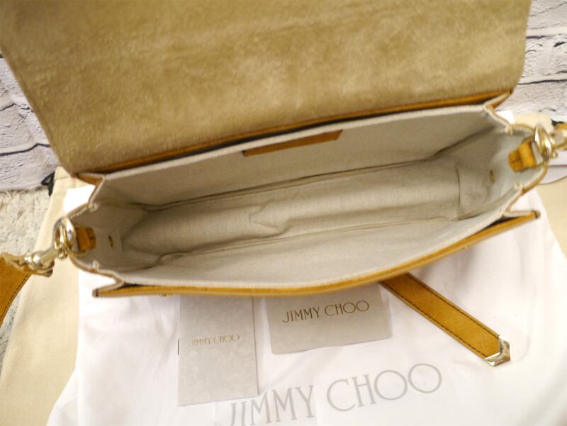 2020美品★JIMMY CHOO ジミーチュウ LEXIE/Sレキシー スモール スエードレザー クロスボディ ショルダー バッグ 明茶★ 便利なクロスボディ