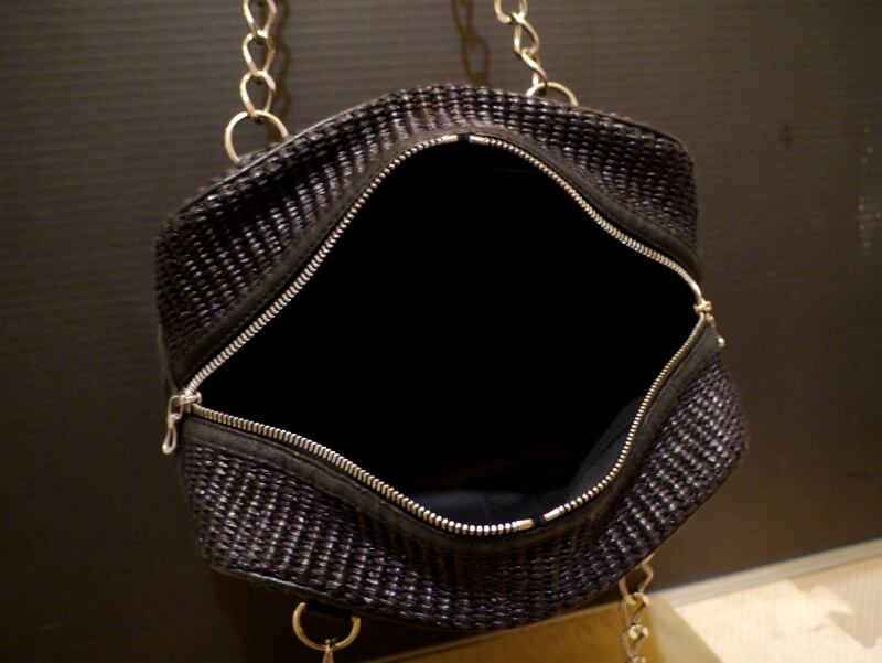 春夏の定番アイテムとして外せないストローバッグですが、ナチュラルなベージュやブラウン系の色味が圧倒的に多い中で、こちらはLANVINらしくスタイリッシュなブラックを採用し、クールなシルバーのチェーンショルダーを用いる事でトレンド感もたっぷりのデザインです。