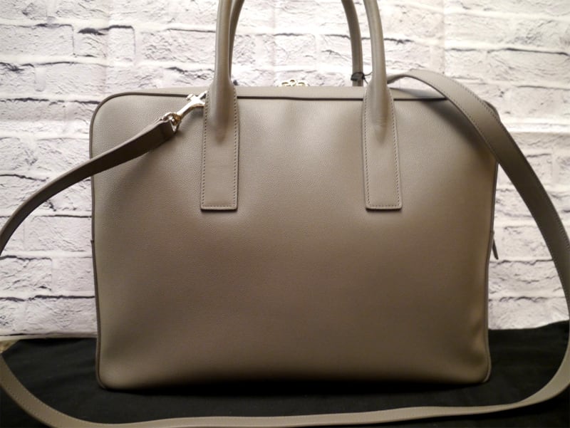 アンニュイのグレージュの色味はとても上品で、硬い印象になりがちなオールレザーのビジネスバッグに柔らかな雰囲気をもたらします。