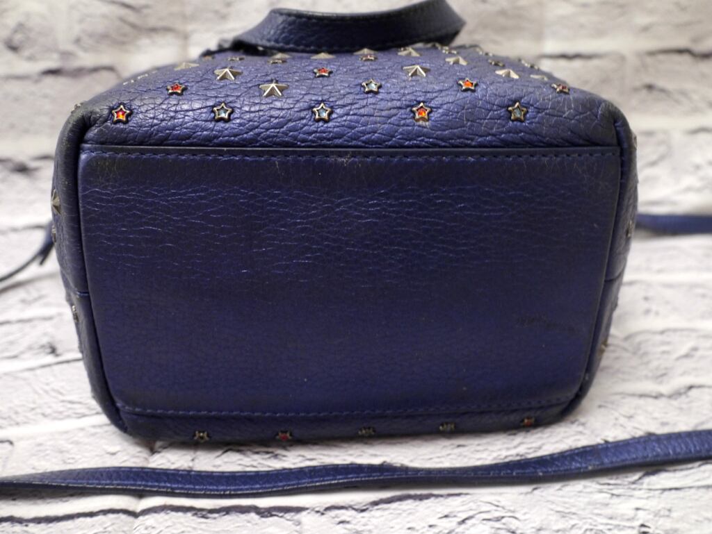 レア★JIMMY CHOO ジミーチュウ MINI SARA ミニサラ ☆スタッズ 2way クロスボディ レザー トート バッグ 青★ 斜め掛け可能な定番モデル♪