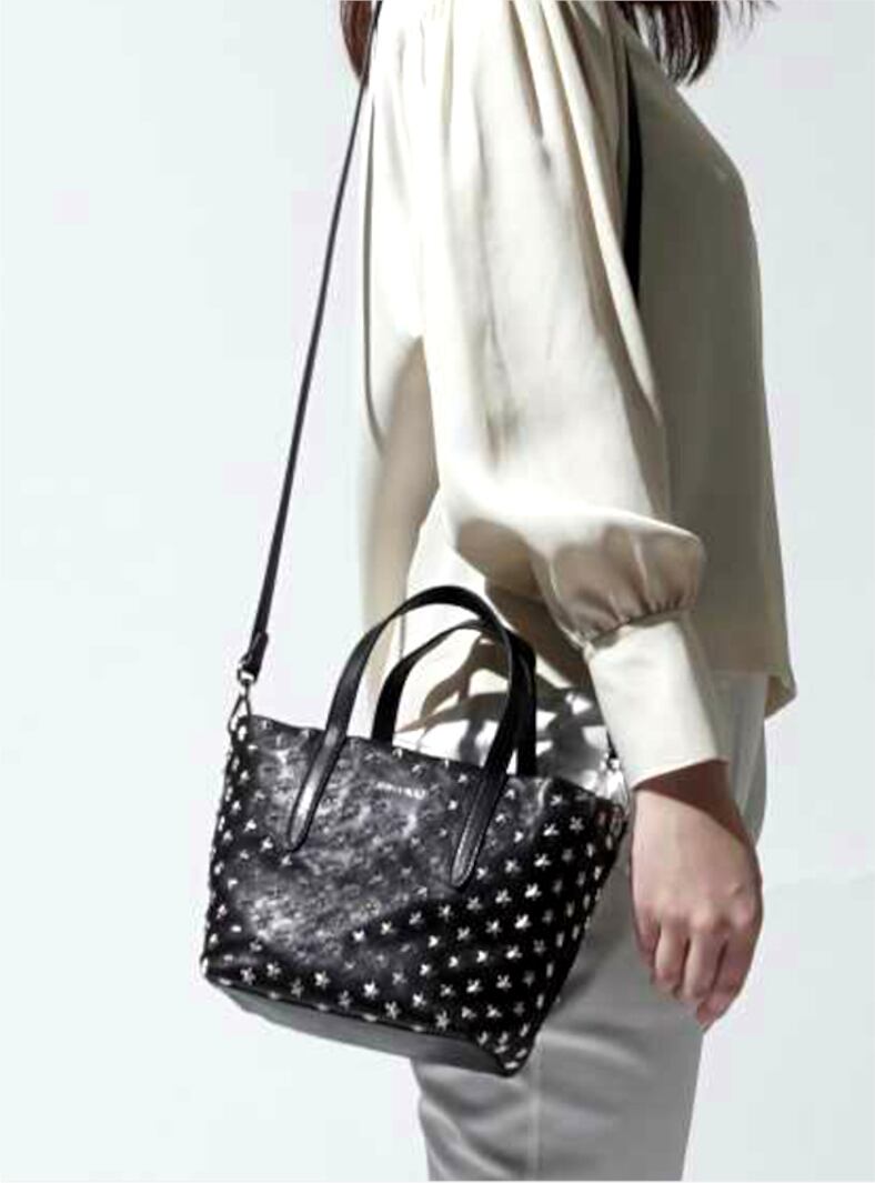 JIMMY CHOO(ジミーチュウ) MINI SARA(ミニサラ) マルチスタースタッズ クロスボディ 2way ソフトレザー トート バッグです。