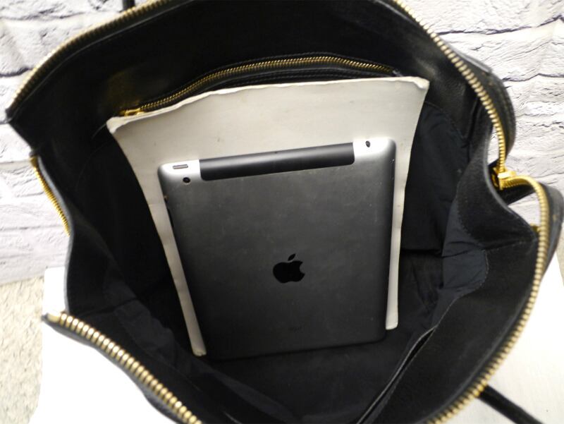 A4用紙がスッポリと収まる絶妙なサイズ感に、サイドジップの開閉やマチが広めに取られた構造で荷物はたくさん入り、用途に合わせて使い勝手も素晴らしいと思います。