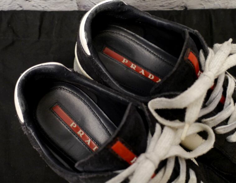 ◆PRADA SPORTS プラダ スポーツ TRAINERトレーナー スエードレザー レースアップ スニーカー 黒x白 6.5◆ 合わせやすいヘビロテスニーカー