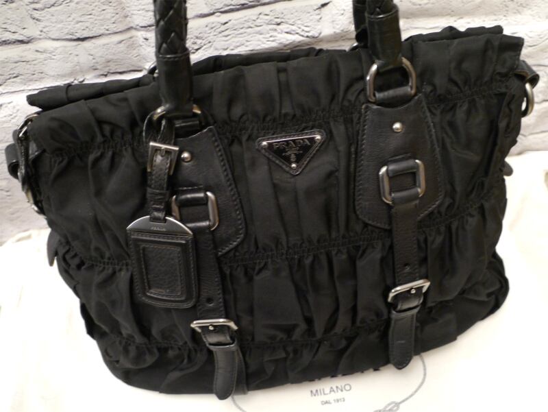 PRADA(プラダ) ギャザーデザイン イントレハンドル ナイロンxレザー切替 トート ハンド バッグです。