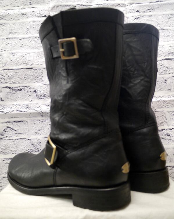 美品15万★JIMMY CHOO ジミーチュウ 247 BIKER バイカー レザー エンジニア ブーツ 38 黒★ 3シーズン着用可能の便利な定番エンジニア♪
