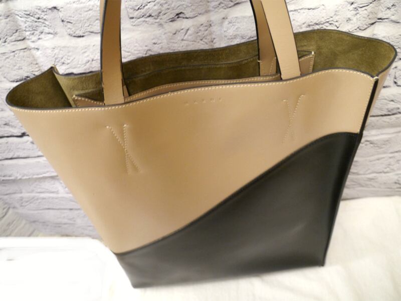 19万◆MARNI マルニ A4対応 バイカラーデザイン レザー トート ハンド バッグ 黒x茶◆ 上品さと遊び心が共存するMARNIらしいお洒落アイテム