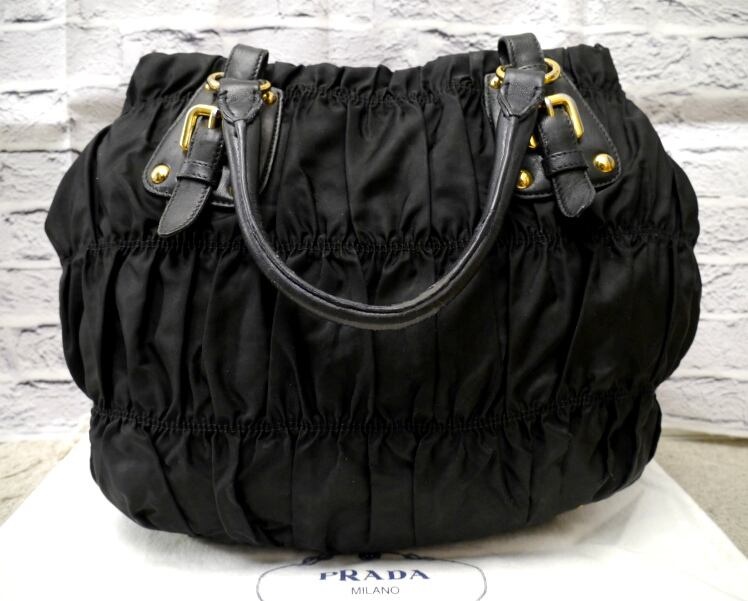 PRADA(プラダ) ギャザーデザイン ナイロンxレザー切替 トート バッグです。