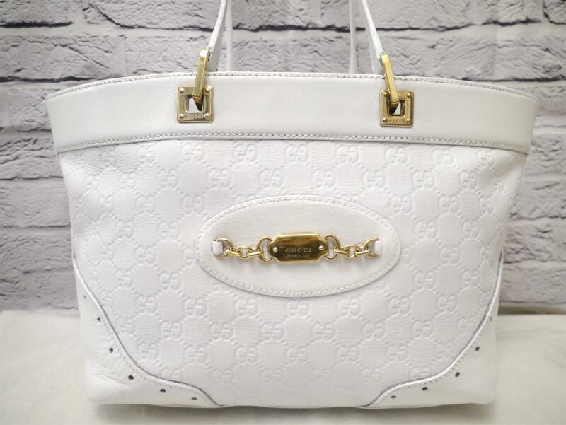 ◆GUCCI グッチ シマライン GG エンボス加工 タブレット対応 レザー トート ハンド バッグ 白◆ 希少なホワイトカラーの万能トートモデル♪