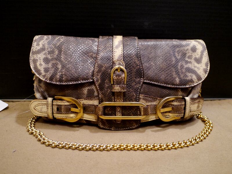 奇抜なデザインが印象的なJIMMY CHOOの小物ですが、こちらはレオパードではなくパイソン柄を使用した珍しいモデルです。