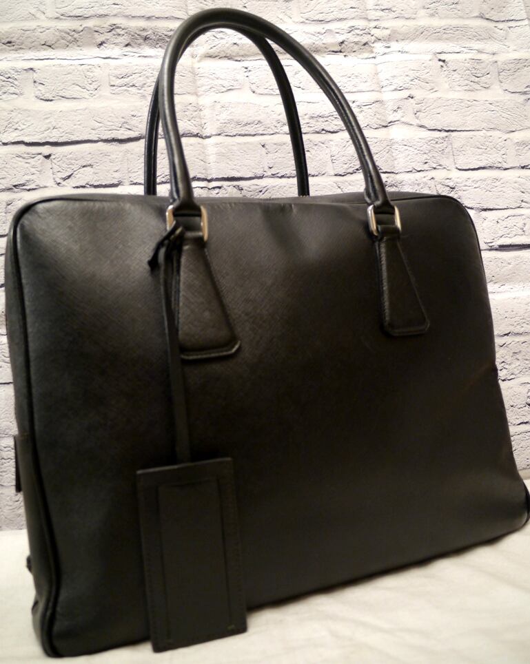32万◆PRADA プラダ サフィアーノ レザー A4対応 ビジネス可 ブリーフケース バッグ ポートフォリオ 黒◆ サフィアーノのビジネスモデル♪