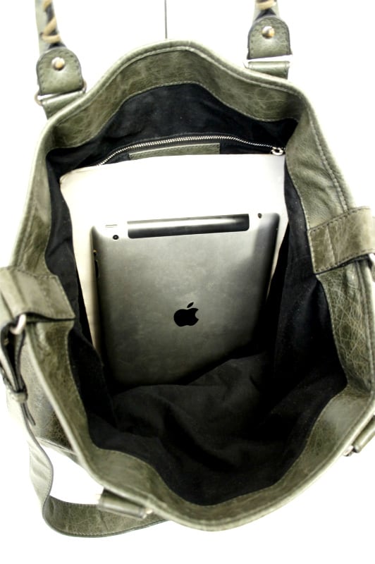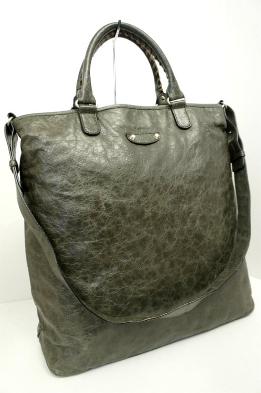 美品◆BALENCIAGA バレンシアガ CLASSIC SQUARE A4対応ビジネス可 クロスボディ 2way レザー トート バッグ カーキ◆ 通勤通学にも大活躍♪