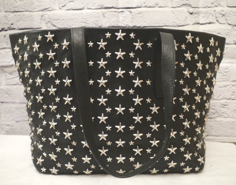 2018美品★JIMMY CHOO ジミーチュウ SOFIA A4対応 マルチ☆スタッズ レザー トート バッグ M 黒x銀★ ☆スタッズが可愛らしい万能トート♪
