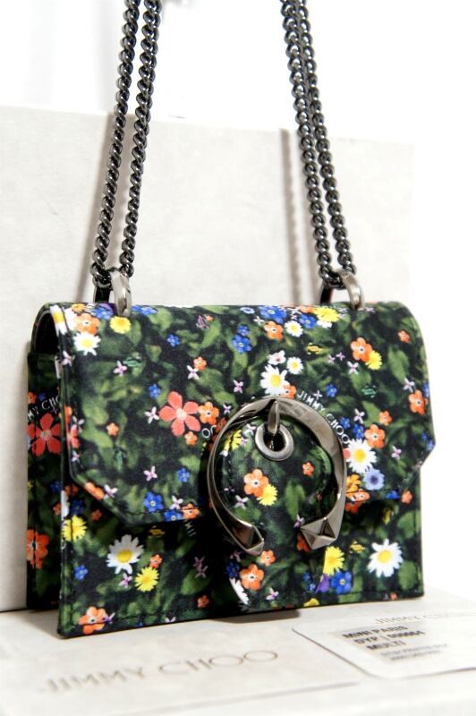 未使用品★JIMMY CHOO ジミーチュウ PARIS パリス フラワー柄 クロスボディ チェーンショルダー ミニ バッグ★ コーディネートのポイントに