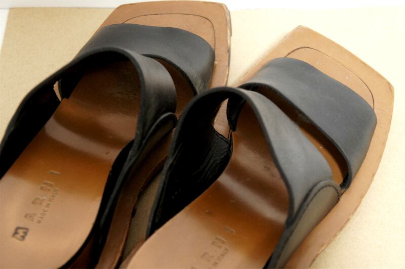 レア◆MARNI マルニ メンズ ダブルストラップ スクエアトゥ ヒール サンダル 黒 40◆ MARNIらしい遊び心を感じるメンズのヒールサンダル♪