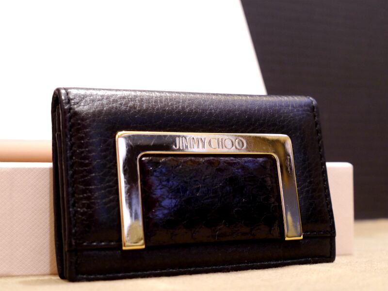 美品★JIMMY CHOO ジミーチュウ パイソン切替 レザー カードケース コインケース 黒★