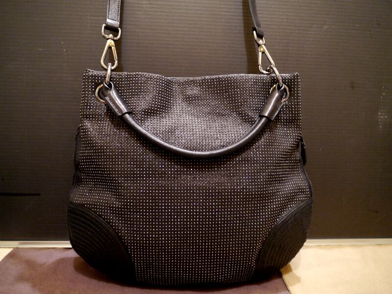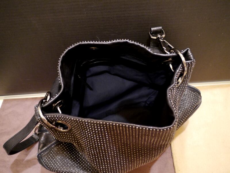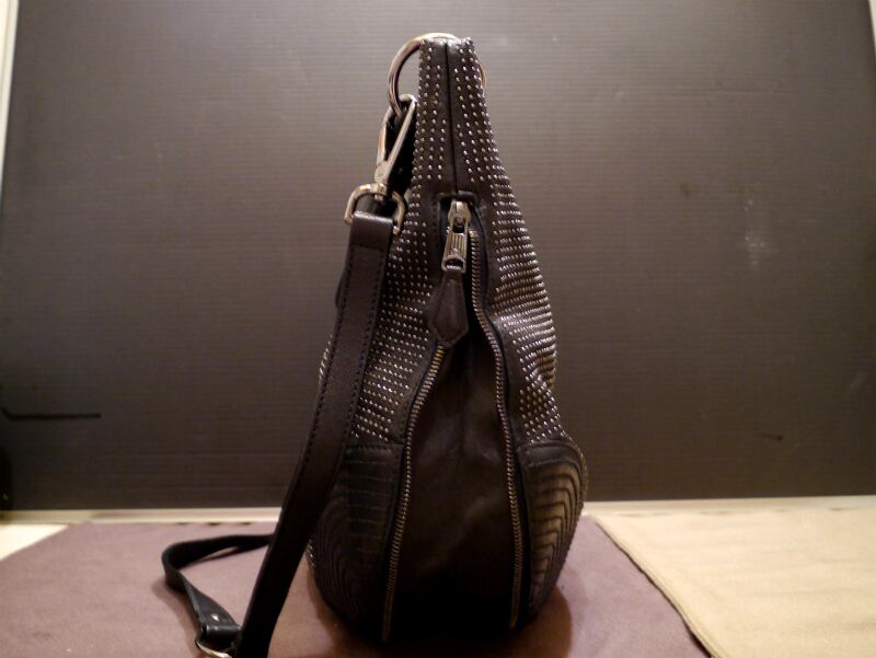 上質なレザーに細かなスタッズが散りばめられた個性的なデザインも、ミクロスタッズなので主張が強過ぎずどちらかと言えば上品な印象の方が強いモデルです。