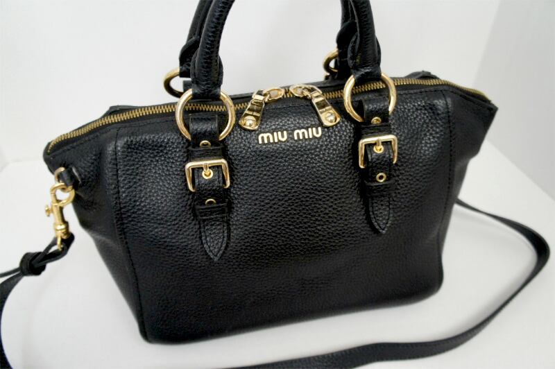 美品★miumiu ミュウミュウ MADRAS マドラス ハンドショルダー 2way レザー トート バッグ 黒★ クラシックな雰囲気が可愛らしい人気モデル