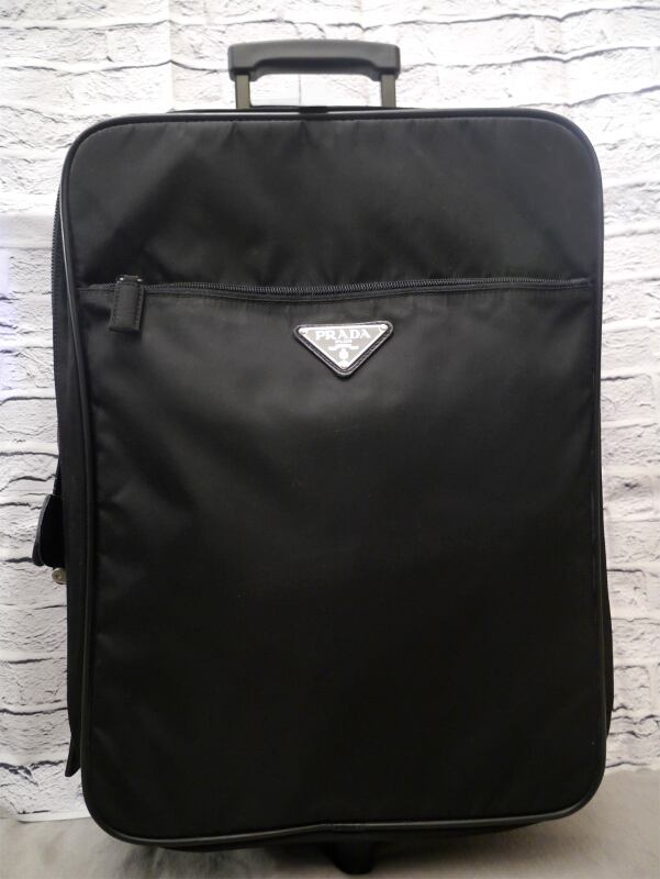 ◆PRADA プラダ VIAGGIO ヴィアッジオ 大容量 男女可 ナイロンxサフィアーノ トロリー バッグ キャリー ケース 黒◆ 旅行や出張に大活躍♪
