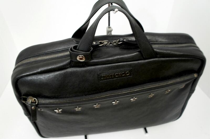 美品★JIMMY CHOO ジミーチュウ ORLAND オーランド ★スタッズ A4対応ビジネス可 レザー バッグ ブリーフケース 黒★ 通勤通学にも大活躍♪