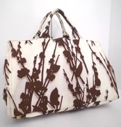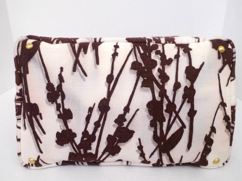 ◆PRADA プラダ CANAPA STAMPATA カナパ ボタニカル柄 A4対応 大容量 キャンバス トート バッグ 白x茶◆ 希少なボタニカル柄の大容量モデル