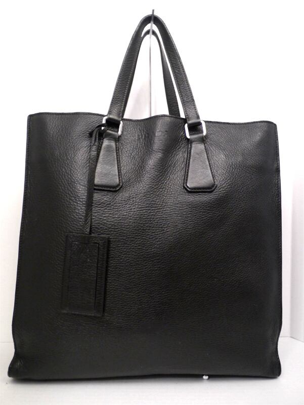 美品24万◆PRADA プラダ A4対応ビジネス可 ユニセックス オールレザー トート ハンド バッグ 黒◆ ビジネス対応の希少な大容量レザーモデル