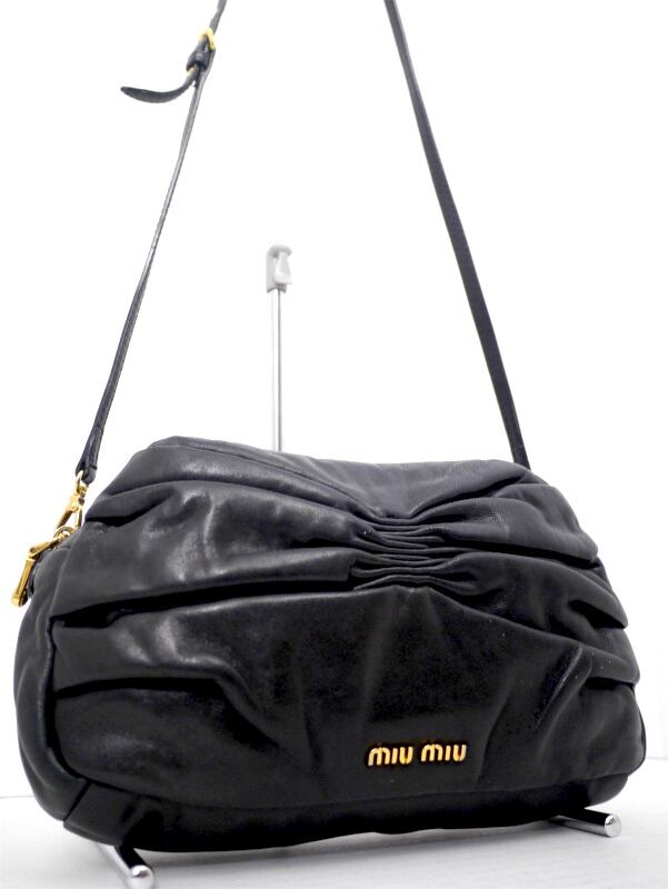 美品◆miu miu ミュウミュウ ギャザーデザイン ナッパレザー クロスボディ ミニ ショルダー バッグ ポシェット◆ コーデのワンポイントに♪