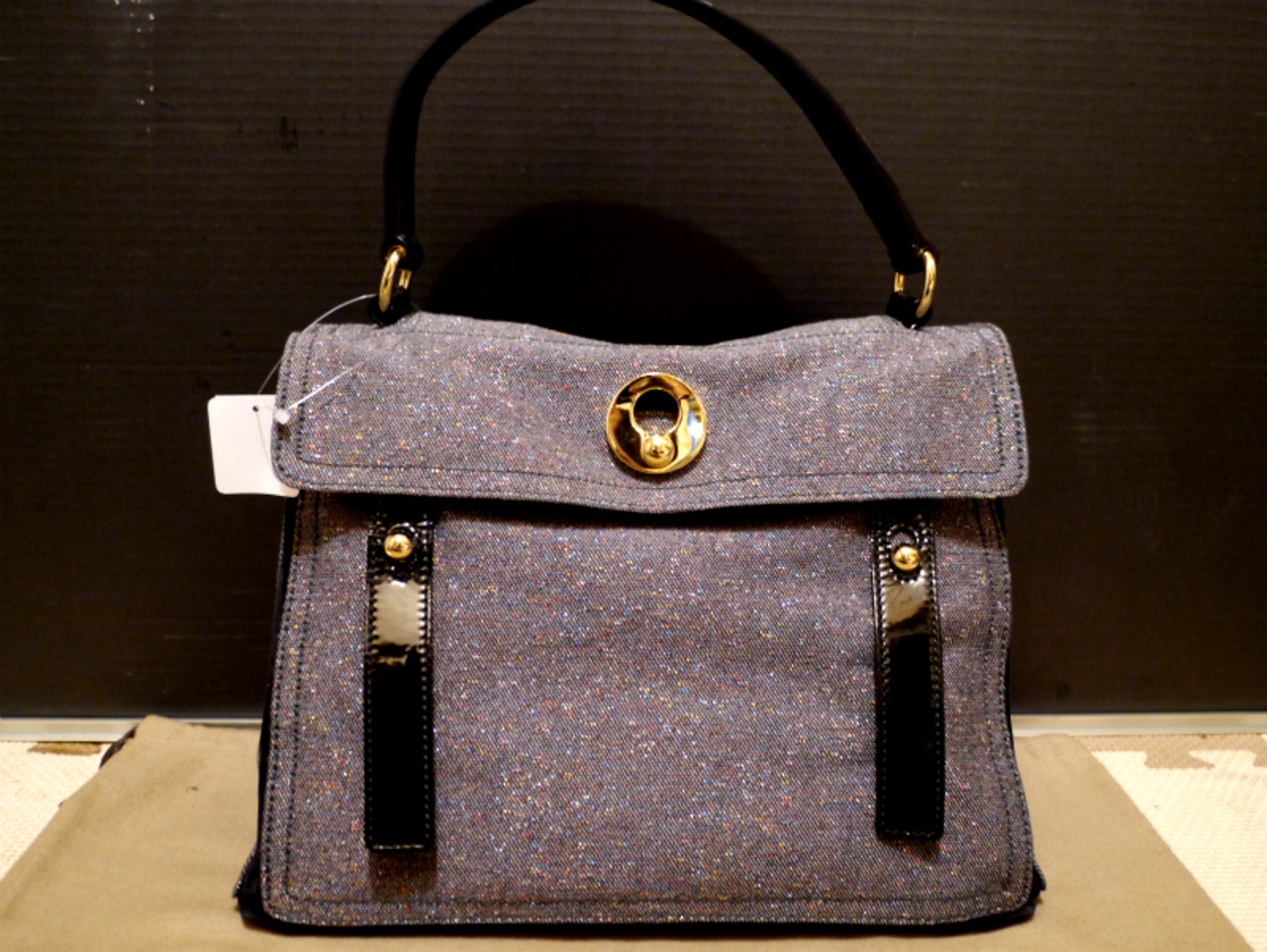 限定品◆YSL イヴサンローラン MUSE TWO ミューズトゥ ツィードxレザー ハンド バッグ 灰◆ 現行のサンローランでも大人気のミューズトゥ♪