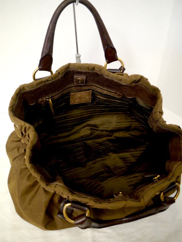 美品◆PRADA プラダ ギャザーデザイン ナイロンxレザー 大容量 ショッパートート ハンド バッグ ◆ 使い勝手も抜群!大人気の大型トート♪