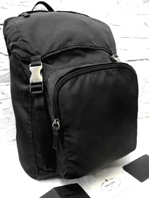 定番◆PRADA プラダ V135 ユニセックス 大容量 ナイロン リュック バックパック ロックサック 黒◆ 使い勝手の良さで大人気の定番モデル♪