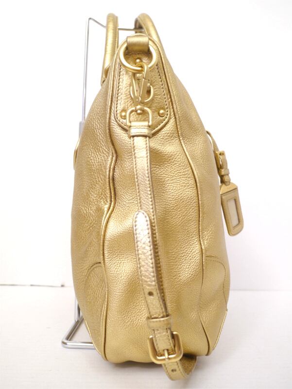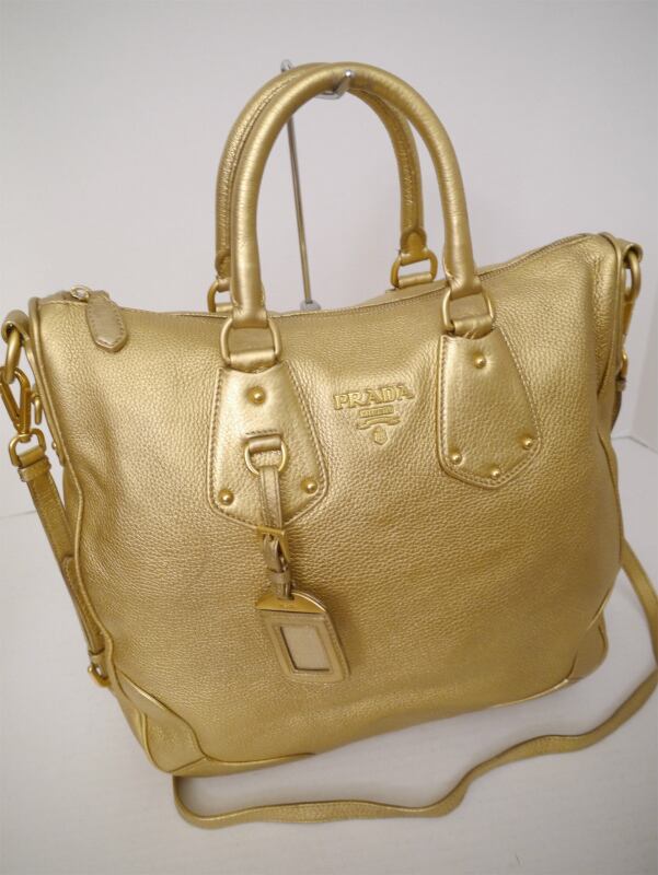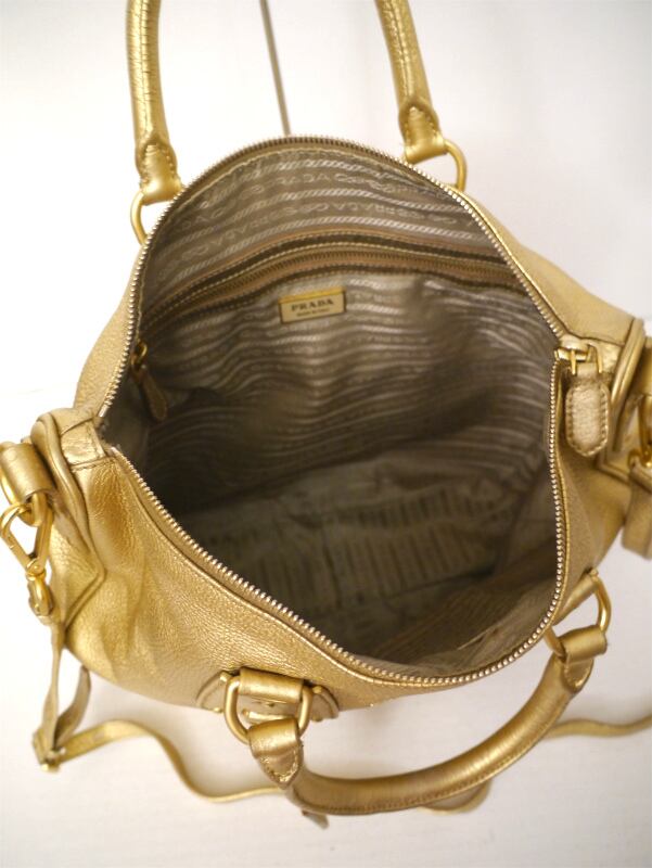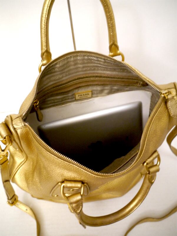 ◆PRADA プラダ VITELLO SHINE A4対応 ビジネス可 2way クロスボディ レザー トート バッグ 金◆ 書類やタブレットも入れやすい万能モデル
