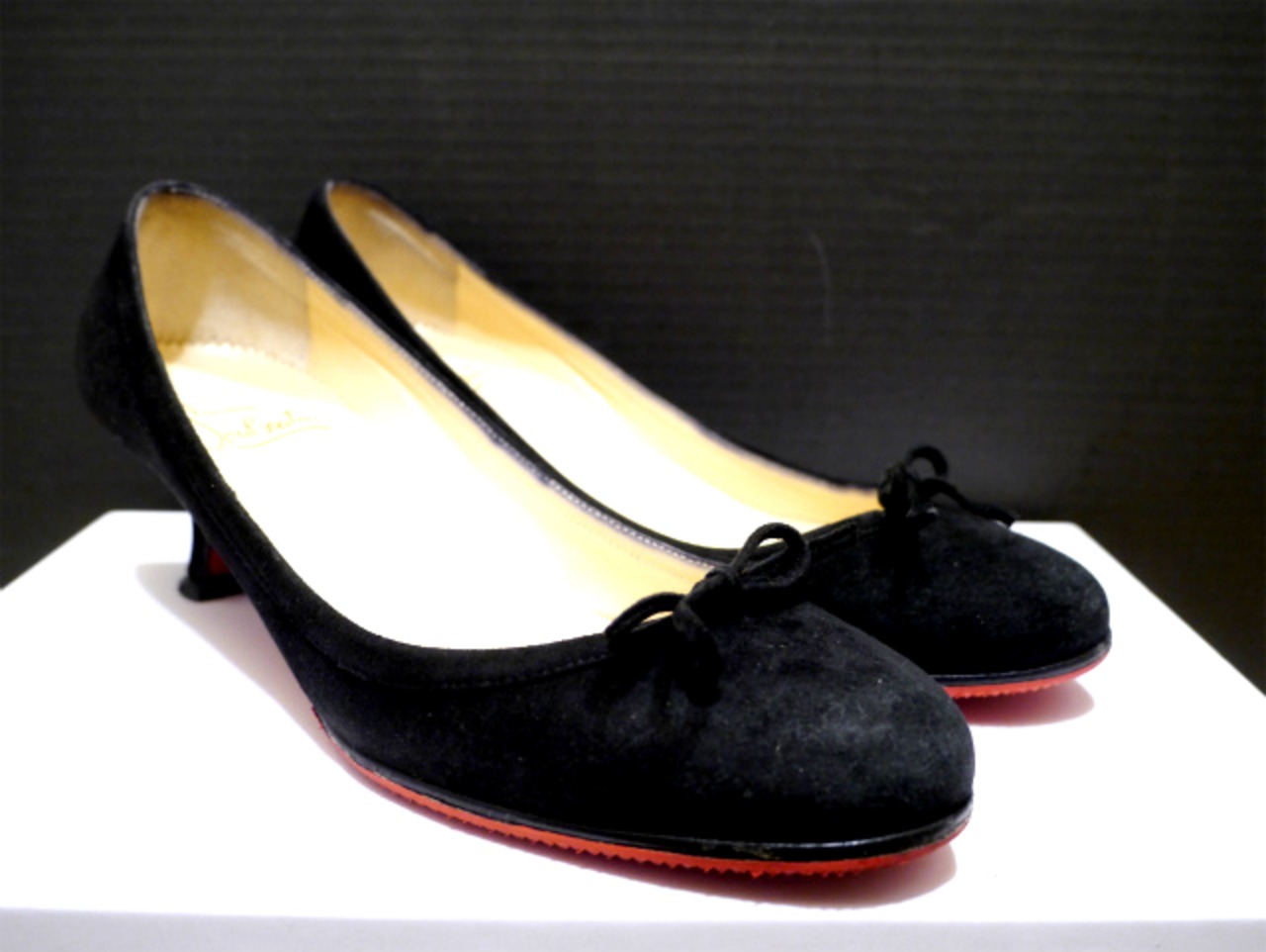 定番★ChristianLouboutin クリスチャンルブタン スエード素材 リボンデザイン パンプス 黒36.5★ 黒のスエードにレッドソールがポイント♪