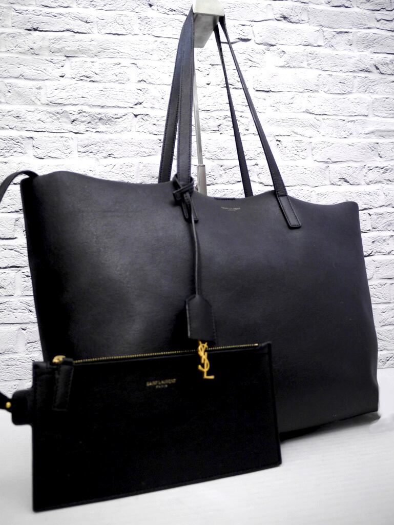 ◆SAINT LAURENT PARIS サンローランパリ ショッピングトート A4対応男女可 大容量 レザー トート バッグ 黒◆ 取り外し可能なポーチも便利