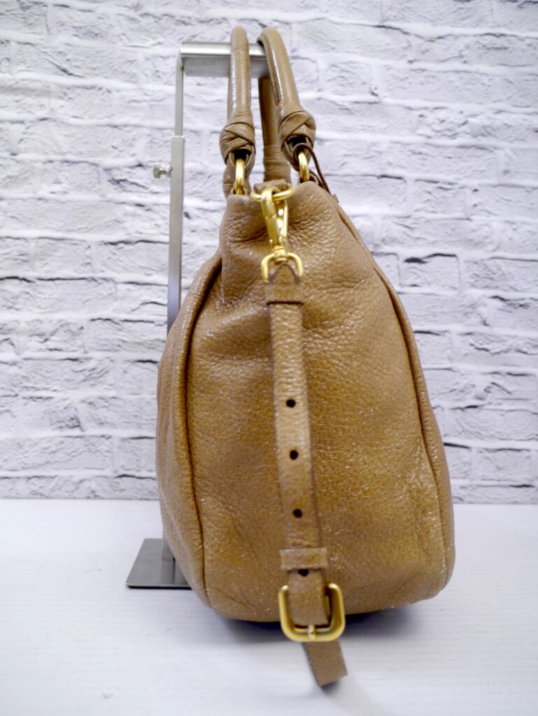 ◆PRADA プラダ VITELLO SHINE ギャザーデザイン ハンド・ショルダー2way クロスボディ レザー トート バッグ BG◆ 使いやすい万能モデル♪