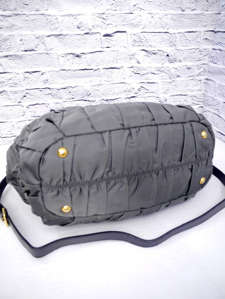 PRADA(プラダ) ギャザーデザイン ナイロンxレザー切替 ハンド・ショルダー2way クロスボディ トート バッグです。