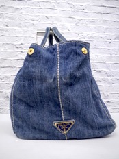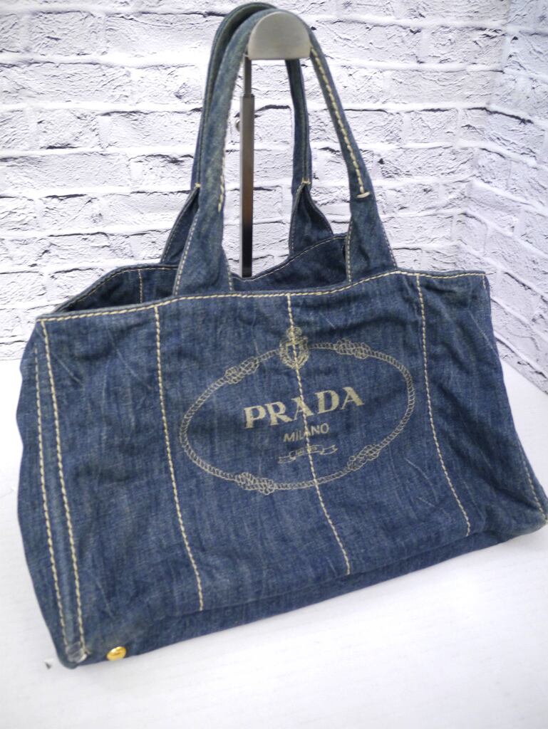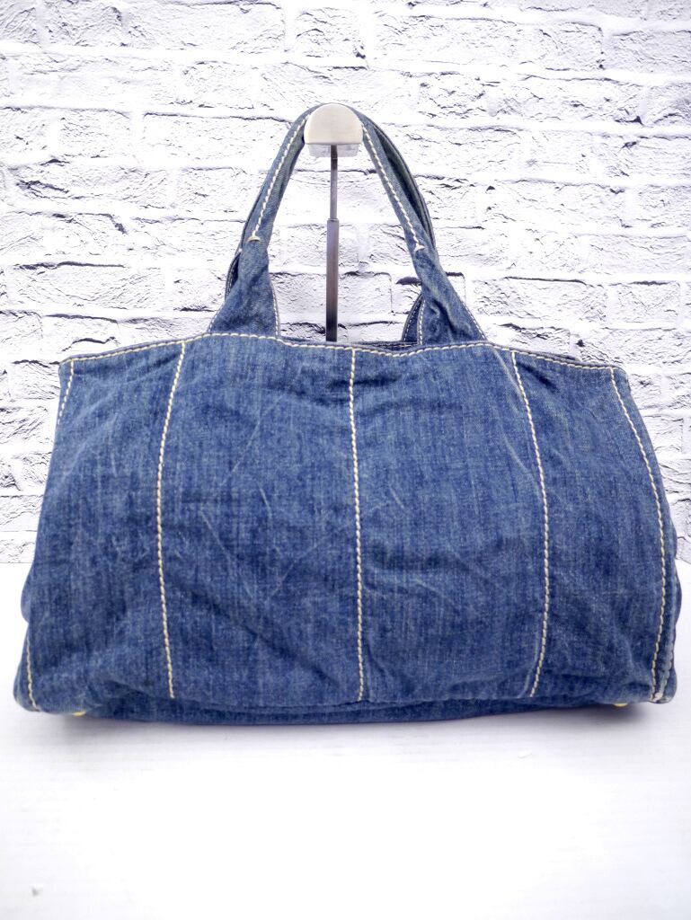 PRADA(プラダ) CANAPA(カナパ) ロゴデザイン サイド開閉 デニム地 トート ハンド バッグです。