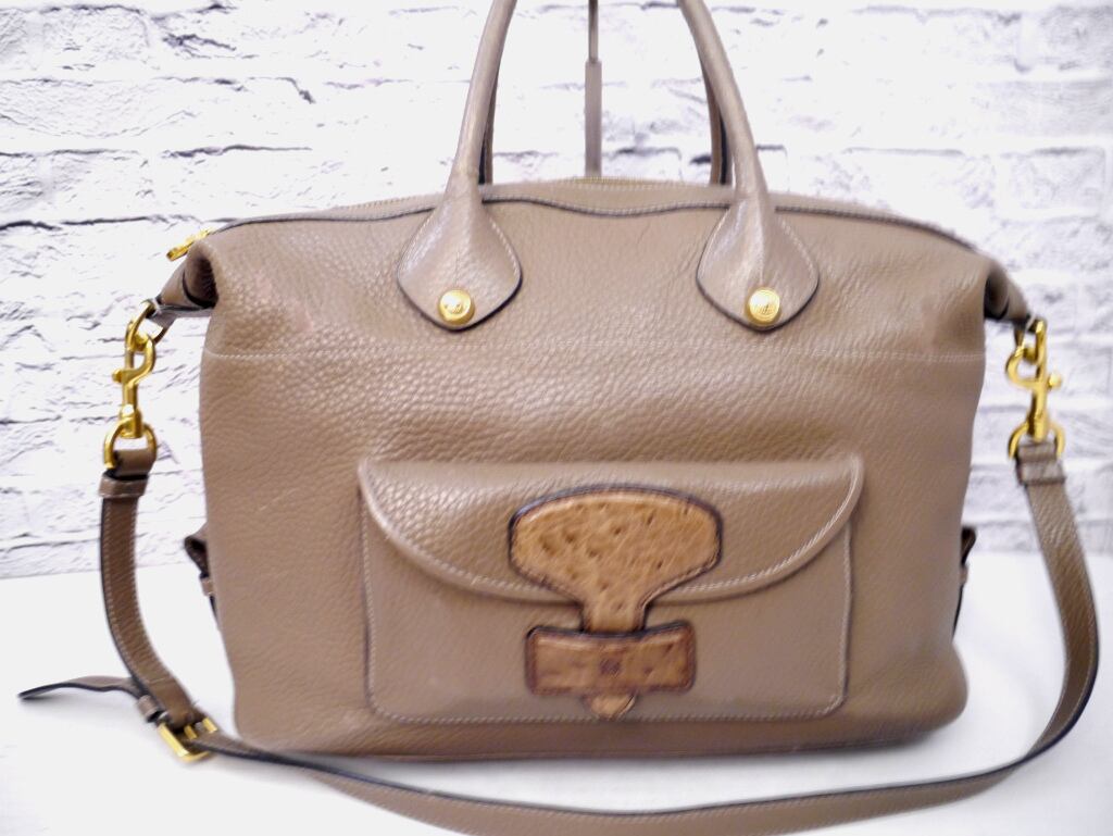 ◆LOEWE ロエベ MAY メイ オーストリッチ切替 レザー 2way クロスボディ トート ハンド バッグ BG◆ 使い勝手の良い2way仕様の万能モデル♪