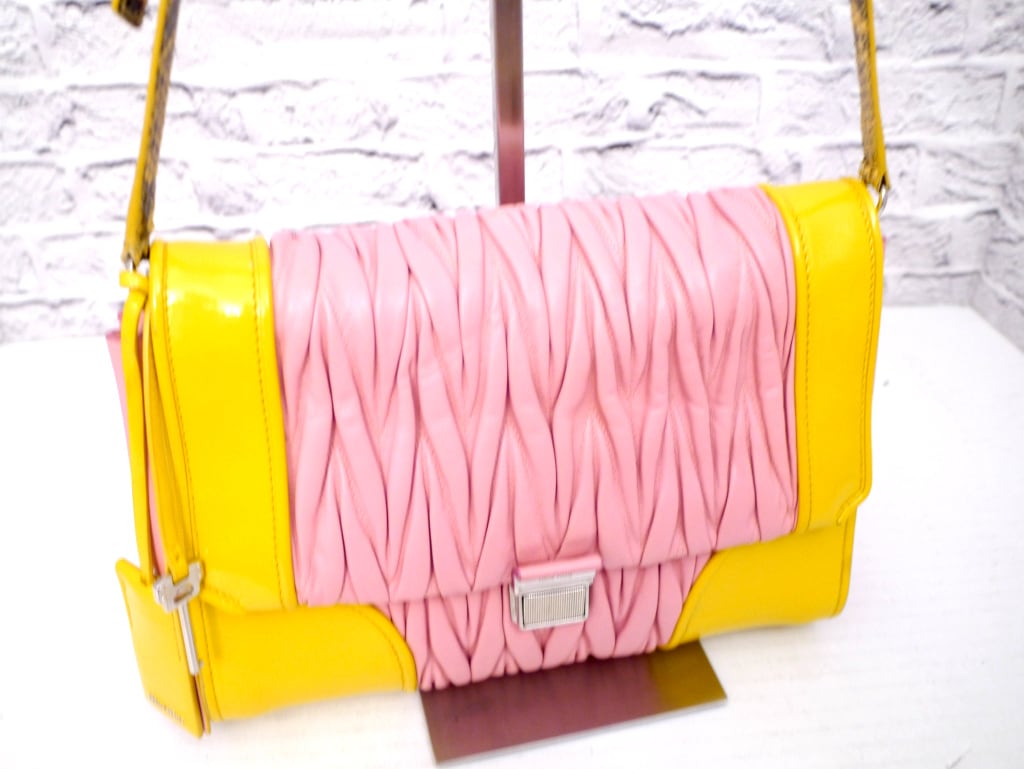 美品◆miumiu ミュウミュウ Amulet Project MATELASSE マテラッセ パイソンレザーストラップ クロスボディ ショルダー バッグ ポシェット◆