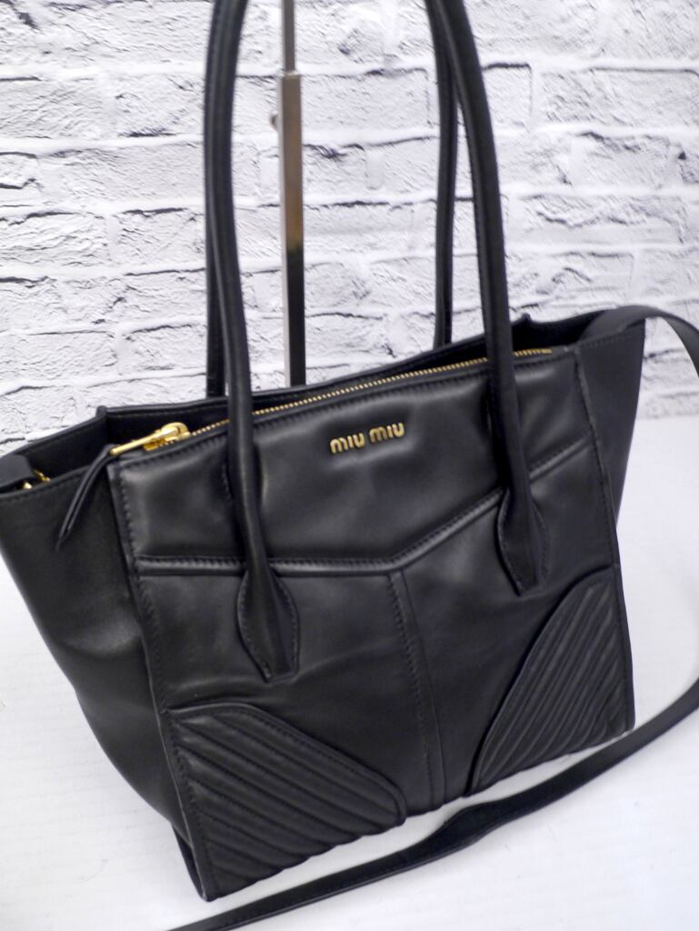 美品◆miu miu ミュウミュウ NAPPA BIKER ナッパバイカー 2wayクロスボディ レザー トート ハンド バッグ 黒x金◆ 大人気のバイカーライン