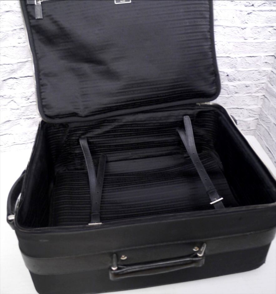 ◆PRADA プラダ VIAGGIO ヴィアッジオ 大容量 男女可 ナイロンxサフィアーノ トロリー バッグ キャリー ケース 黒◆ 旅行や出張に大活躍♪