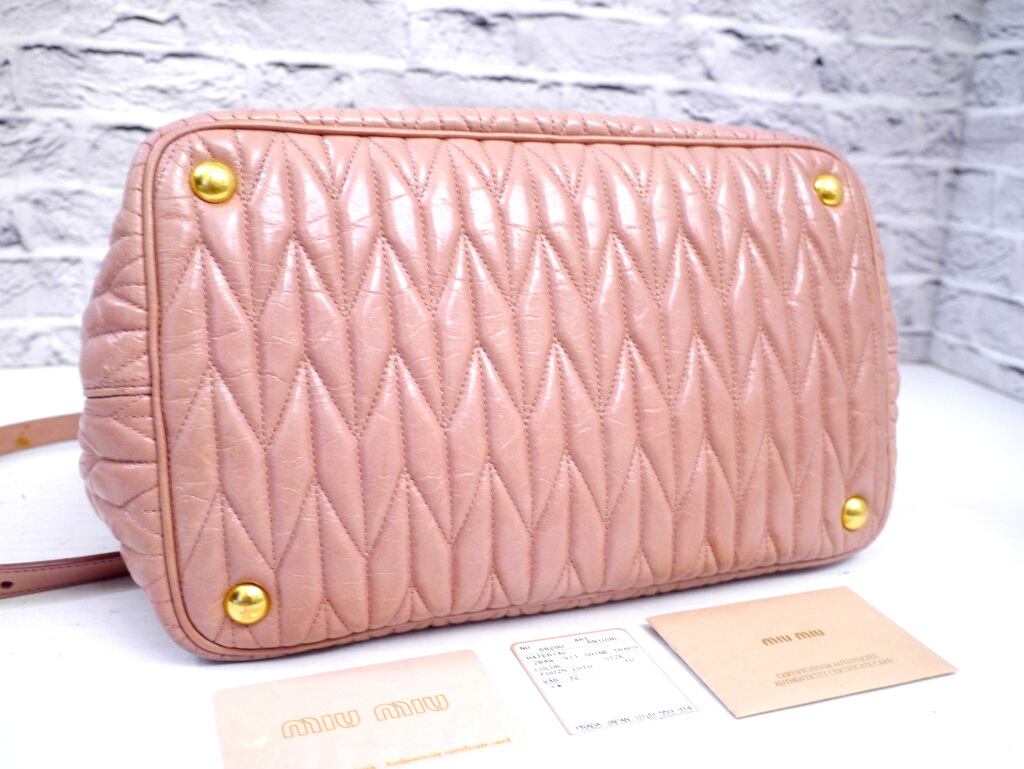 miu miu(ミュウミュウ) VITELLO SHINE TRAPU マトラッセ ハンドショルダー2way クロスボディ レザー トート バッグです。
